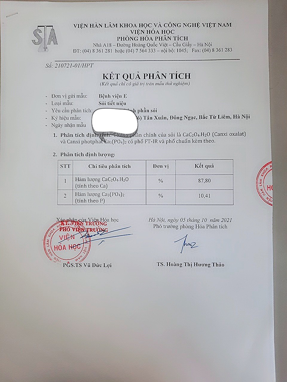 Hình ảnh phân tích sỏi canxi oxalate